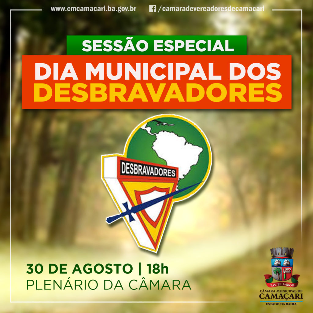 Este ano, o Dia Municipal dos Desbravadores completa 10 anos de instituído em Camaçari. Para comemorar a data, será realizada nesta quarta-feira (30/08), na Câmara Municipal, Sessão Especial sobre o tema. O evento está marcado para iniciar às 18h e é uma iniciativa do vereador Junior Borges (DEM).
