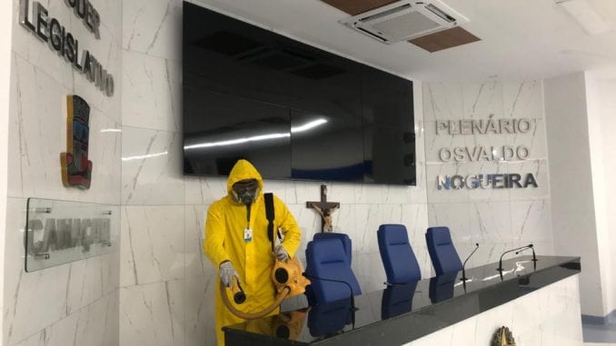 No primeiro semestre a Câmara realizou o processo de desinfecção em três etapas, promovendo uma maior segurança para servidores, terceirizados e a população que frequenta a Casa.