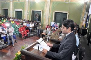 O presidente da Casa Legislativa de Salvador, o vereador Paulo Câmara (PSDB), destacou a importância da sessão especial e convidou o prefeito ACM Neto para fazer o seu pronunciamento.