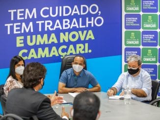 O prefeito de Camaçari, Elinaldo Araújo, juntamente com a titular da pasta do Desenvolvimento Urbano e Meio Ambiente (Sedur), Andréa Montenegro e o secretário do Governo (Segov), José Gama Neves, participaram nesta segunda-feira (15/3), da