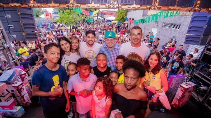 Nem mesmo a forte chuva que caiu no início da tarde deste domingo (27) tirou o brilho da maior festa infantil realizada em Camaçari. O público apareceu aos poucos, logo após a chuva, e foi